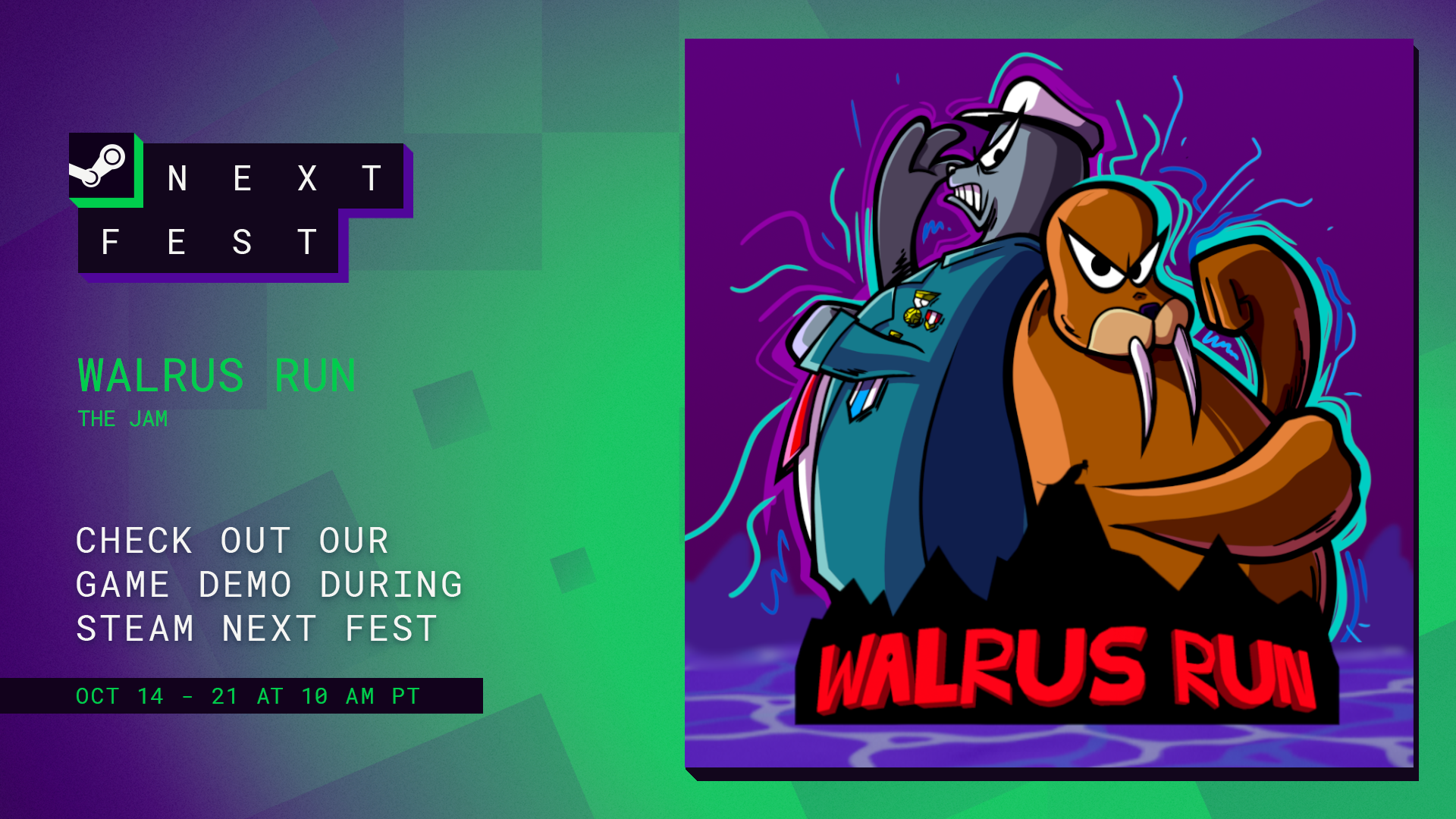 Walrus Run is the first game released by the brand new indie game studio, The Jam. This game was solo-developed by the company's owner, Eric Callahan. To follow the game's development, you can follow The Jam's Twitter.
